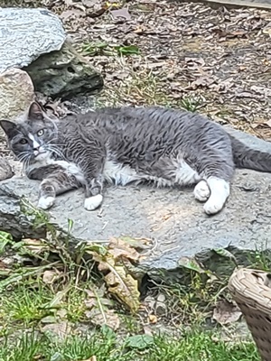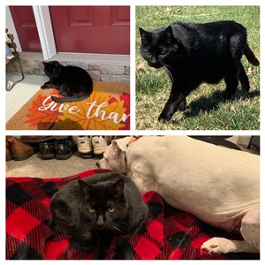 Chase found us on a brutally cold day in January 2008. He was estimated to be 6-8 months old. We were "dog" people, not "cat" people. However, Chase made us "cat" people. We have many memories over the 18+ years with him. Here are a few: Chase loved to torment the dogs in his life. He was that annoying little brother. He would sit and stare at our one dog, Sophie, while she was resting on the couch until she would get annoyed and snap at him. Chase would simply smack her on top of the head and go about his day. Chase also got picked up by our local police department. He slipped out of the house one morning without our knowledge. He wandered up to a neighbor on an adjacent road. She called our township police because she didn't want him to get hurt. The police came and picked him up. Since no one was home at our house, the police took him back to the office. My husband was notified and immediately left work to go pick him up. When my husband walked into the police station, he found Chase sitting in the secretary's in-basket on her desk. They said he was so nice they didn't want to keep him secured in the back. Our dog, Frankie, was afraid of fireworks and thunder. We would retreat to our master closet where I would play music during these times to calm him. Chase always came with us for moral support to his canine pal. Perhaps, our fondest memory of Chase was his purr. We called him our little "purr" machine. We miss that the most now but know we did the right thing as his health started to fail. Fly high sweet boy! You are forever in our hearts.
